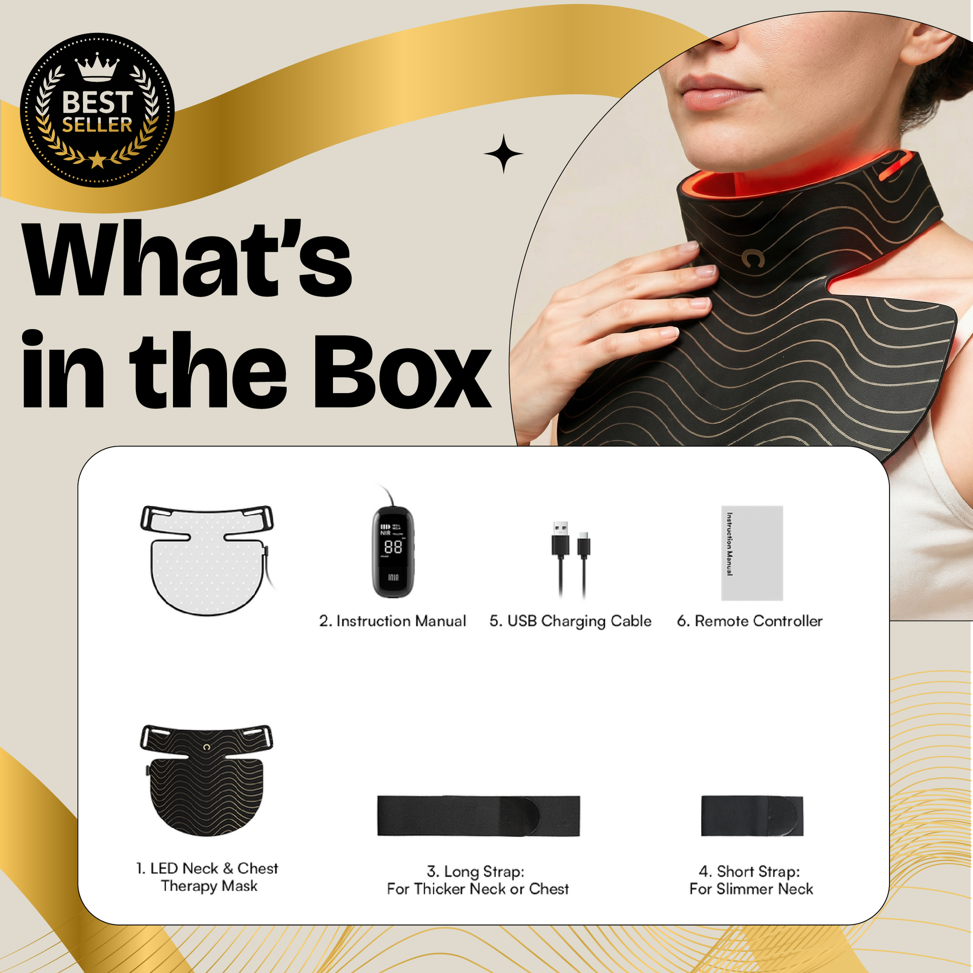 The mask uses advanced LED phototherapy with clinically studied wavelengths to support skin at different depths. Red light and near-infrared (NIR) help support firmness and the appearance of fine lines, blue light helps calm blemish-prone skin, and yellow light helps improve the look of tone and redness.